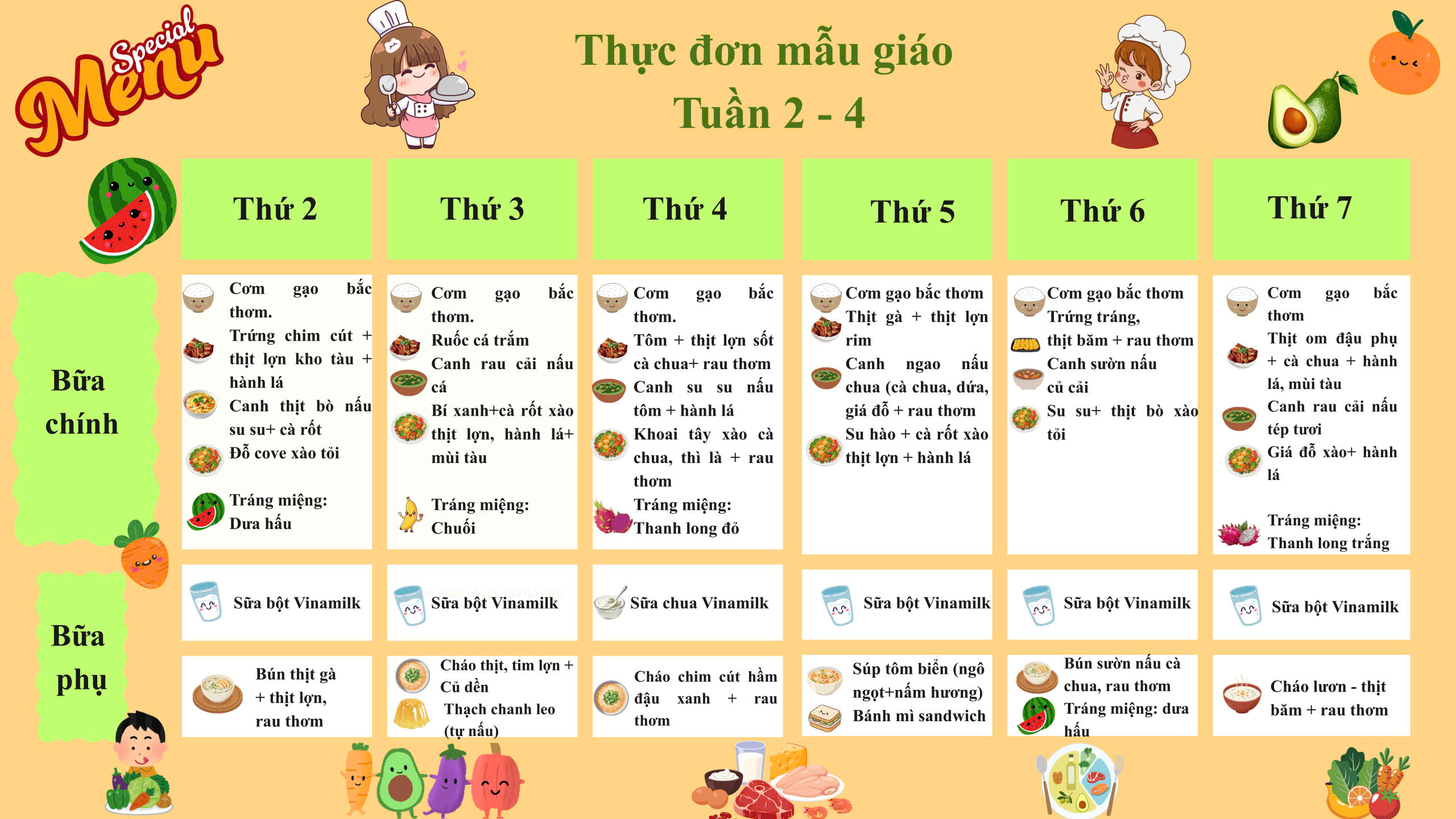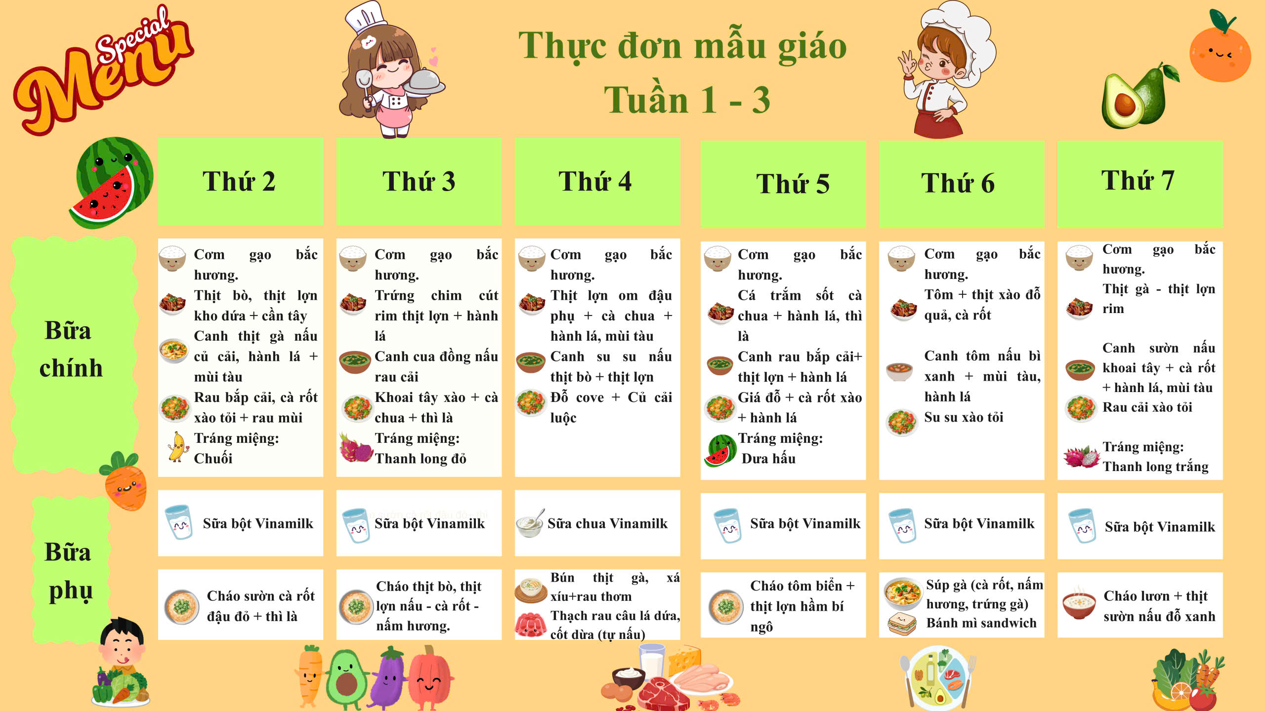 Bảng thực đơn của trẻ